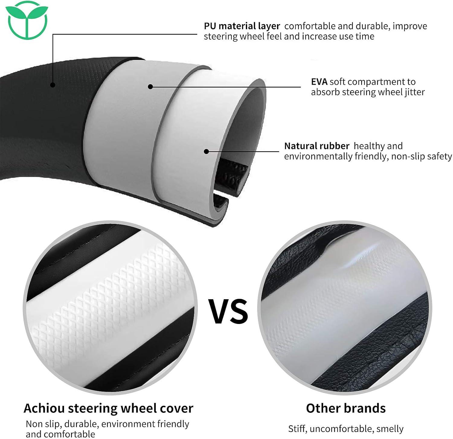 Save big on Achiou Gray Car Steering Wheel Cover Universal 15 inch with Grip Contours, Leather Auto for Men and Women Non-Slip Breathable Soft and Comfortable(Black + Black) and accessories during our BOGO sale. Buy one, get one 50% off!